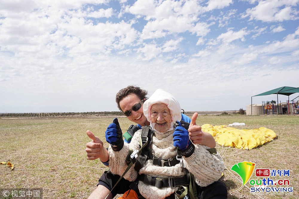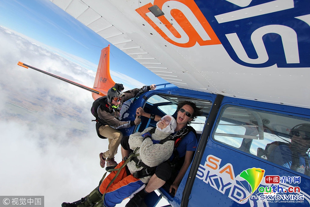 12月14日消息,澳大利亞一名102歲高齡的老奶奶日前刷新世界紀(jì)錄,她跟著教練從1萬4000英尺(約4300公尺)的高空一躍而下,成為全球最年長的跳傘玩家。