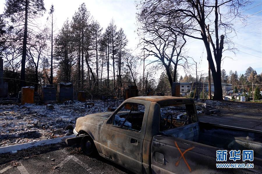 這是12月7日在美國加利福尼亞州比尤特縣天堂鎮(zhèn)拍攝的山火廢墟。 新華社記者吳曉凌攝