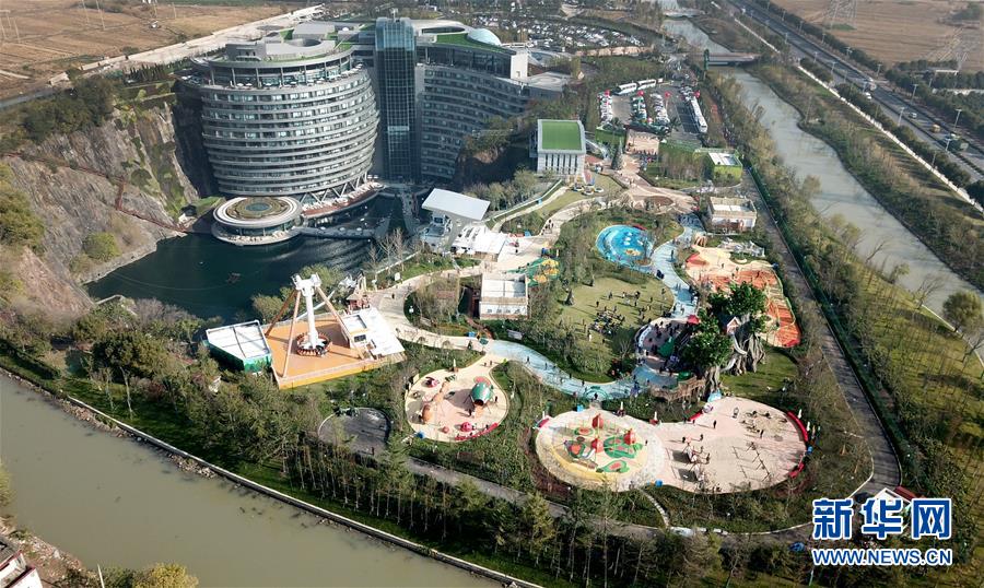 12月18日無人機(jī)拍攝的世茂精靈之城主題樂園。 當(dāng)日,“世茂精靈之城主題樂園奇幻親子嘉年華開幕暨上海公益基地揭牌儀式”在位于上海佘山國家旅游度假區(qū)的世茂精靈之城主題樂園一期(“深坑秘境”)正式啟動。“深坑秘境”毗鄰上海佘山世茂洲際酒店,除了擁有俯瞰“深坑”的玻璃棧道外,還包括360度崖壁大擺錘、精靈樹屋、沙漠考古、夢幻水域和蟲蟲世界等項目,帶來親子游玩新體驗(yàn)。 新華社記者 方喆 攝