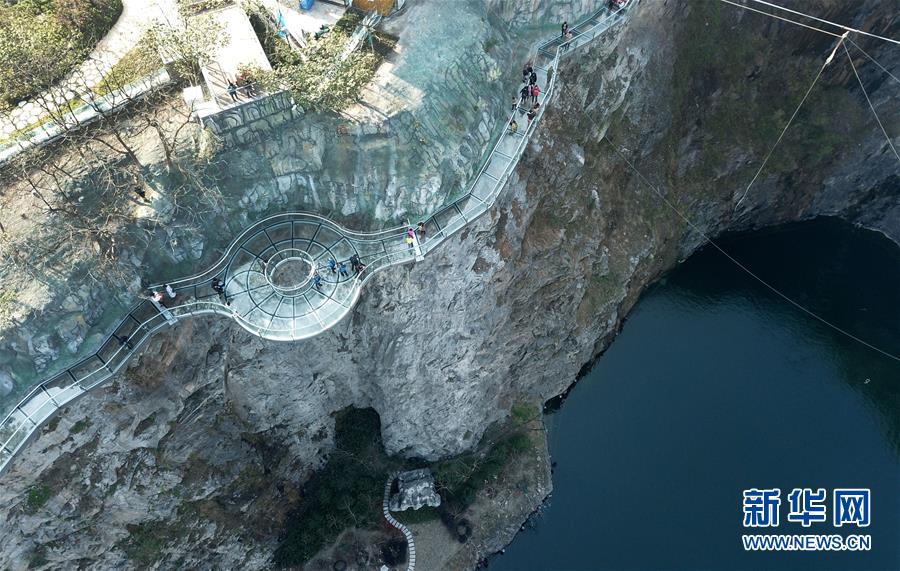 12月18日,游客在樂(lè)園內(nèi)的玻璃棧道上行走(無(wú)人機(jī)拍攝)。 當(dāng)日,“世茂精靈之城主題樂(lè)園奇幻親子嘉年華開幕暨上海公益基地揭牌儀式”在位于上海佘山國(guó)家旅游度假區(qū)的世茂精靈之城主題樂(lè)園一期(“深坑秘境”)正式啟動(dòng)?!吧羁用鼐场迸徤虾Y苌绞烂揠H酒店,除了擁有俯瞰“深坑”的玻璃棧道外,還包括360度崖壁大擺錘、精靈樹屋、沙漠考古、夢(mèng)幻水域和蟲蟲世界等項(xiàng)目,帶來(lái)親子游玩新體驗(yàn)。 新華社記者 方喆 攝