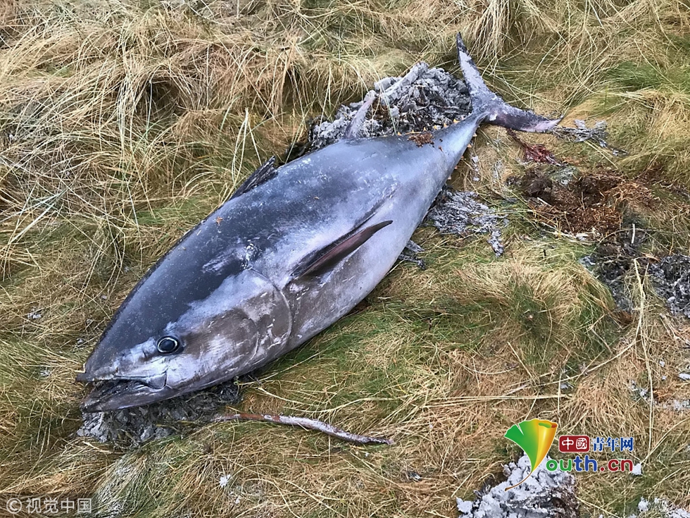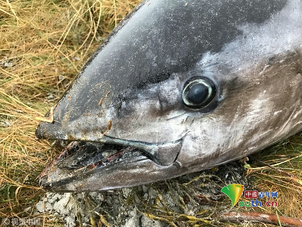英國沙灘現(xiàn)2米長巨型藍鰭金槍魚