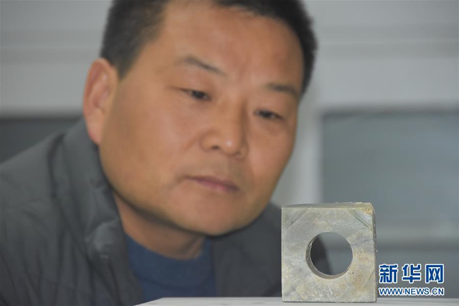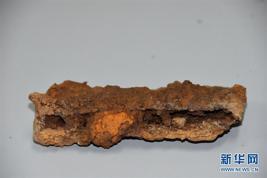這是發(fā)掘的隨葬“搖錢樹”底座(11月15日攝)。
