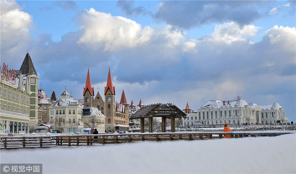 2018年12月7日,山東煙臺,雪后的海濱景色。