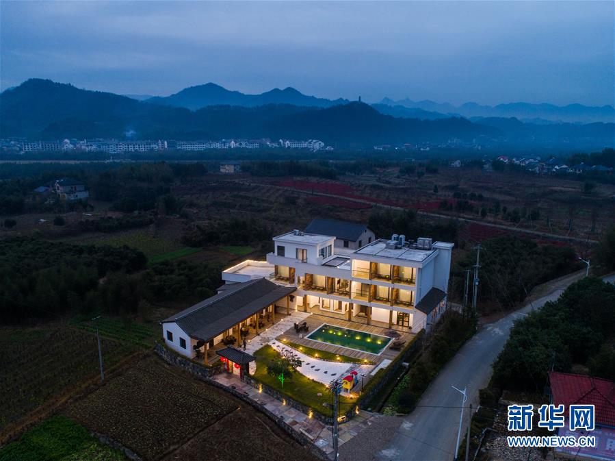 夜色中的民宿“初憶小院”(12月19日攝)。該民宿是河橋鎮(zhèn)“90后”女孩章淑貞開(kāi)辦的,民宿融入了大量的現(xiàn)代建筑設(shè)計(jì)風(fēng)格,深受年輕人的喜愛(ài)。 新華社記者 徐昱 攝