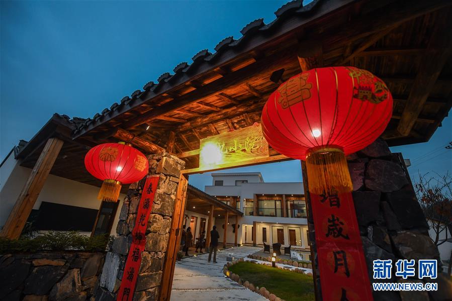 12月19日,客人走進(jìn)民宿“僻地寒樓”。該民宿共有7幢風(fēng)格各異的小屋分布在山坡上,頗具特色。河橋鎮(zhèn)青年張雁辭去了上海的工作,回到家鄉(xiāng)開(kāi)辦了這家民宿。 新華社記者 徐昱 攝