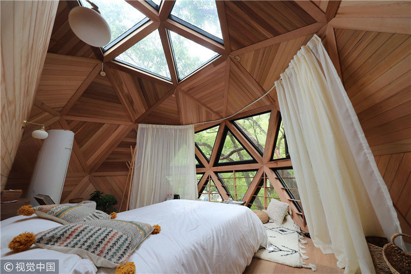 2018年4月22日,浙江寧波,樹(shù)蛙部落的特色房屋。張培堅(jiān)/視覺(jué)中國(guó)