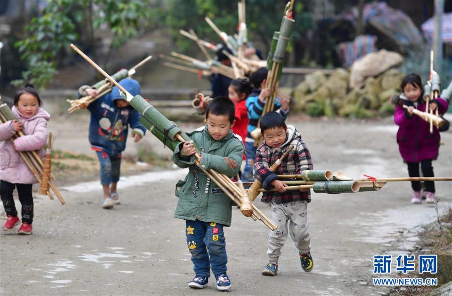 孩子們在搬運(yùn)剛剛購買的蘆笙(12月24日攝)。