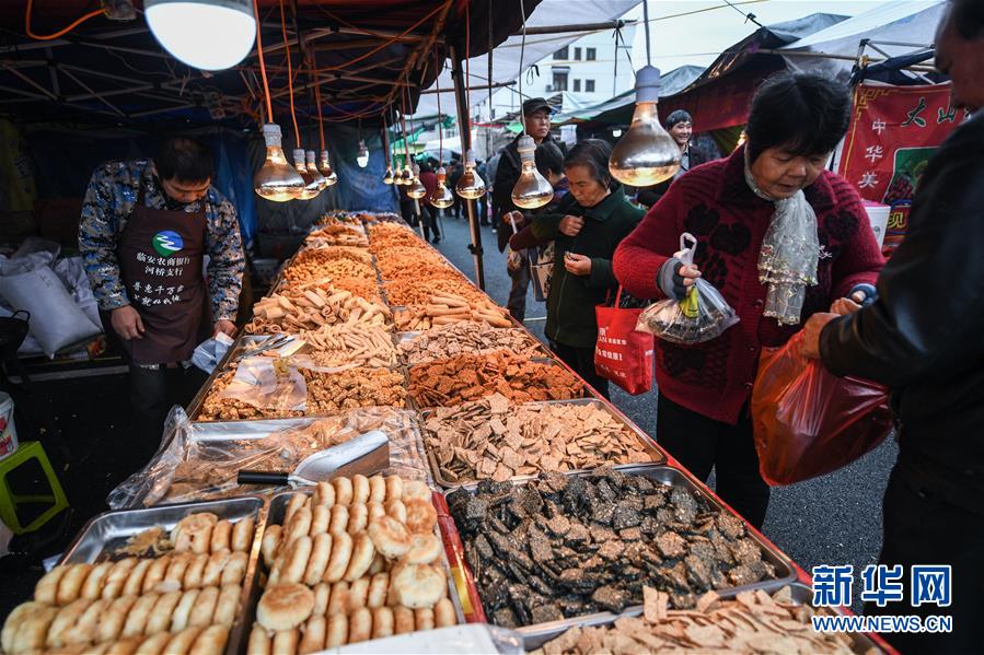 11月19日,人們?cè)趶R會(huì)現(xiàn)場(chǎng)購(gòu)買當(dāng)?shù)孛朗场?新華社記者 徐昱 攝