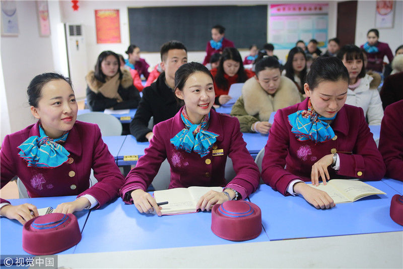 2018年12月27日,四川成都,為備戰(zhàn)即將開通的成雅鐵路,中國鐵路成都局集團有限公司成都客運段動車二隊對成雅動車的乘務(wù)人員進行理論、形體、服務(wù)禮儀等內(nèi)容的培訓(xùn)。