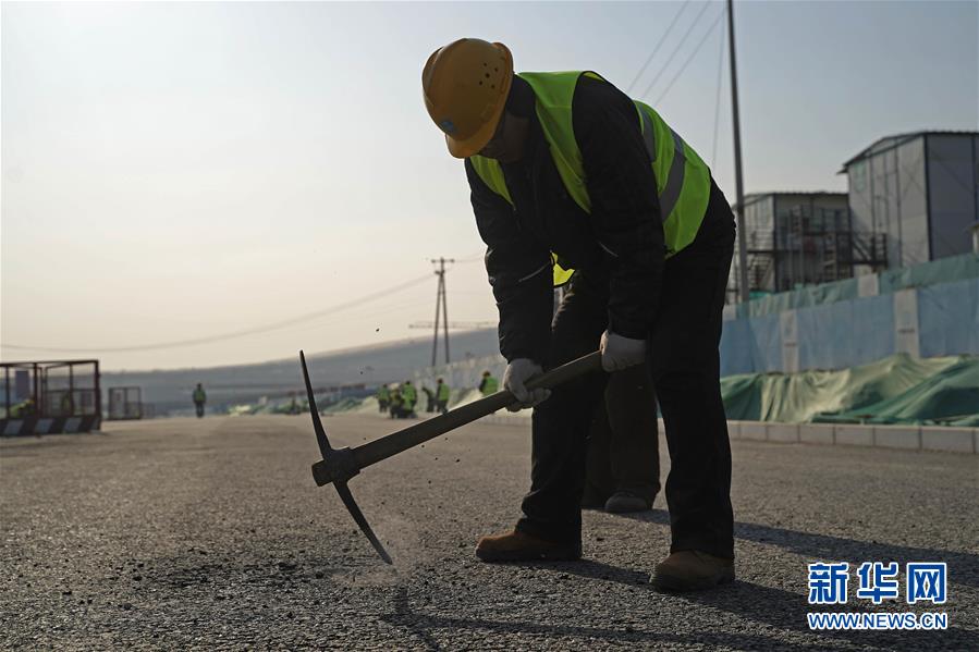2019年1月1日,工人在北京大興國際機(jī)場中建三局三公司工地上剔鑿井口。 當(dāng)日是新年第一天,眾多勞動(dòng)者忙碌在工作崗位上。 新華社記者 才揚(yáng) 攝