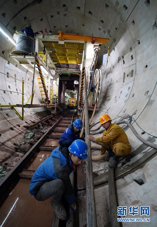 12月30日,南昌地鐵四號(hào)線西禮區(qū)間項(xiàng)目工地上,中鐵上海工程局集團(tuán)有限公司的職工在進(jìn)行施工。