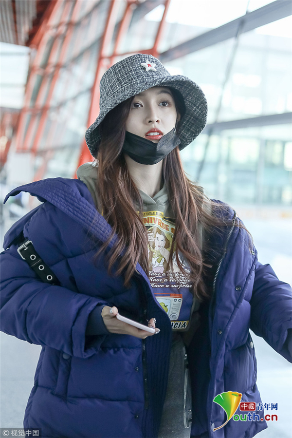 1月1日,北京,吳宣儀現(xiàn)身機(jī)場(chǎng)。外帶著漁夫帽的她嘟嘴顯可愛,裹著厚重羽絨服認(rèn)真過冬超保暖。