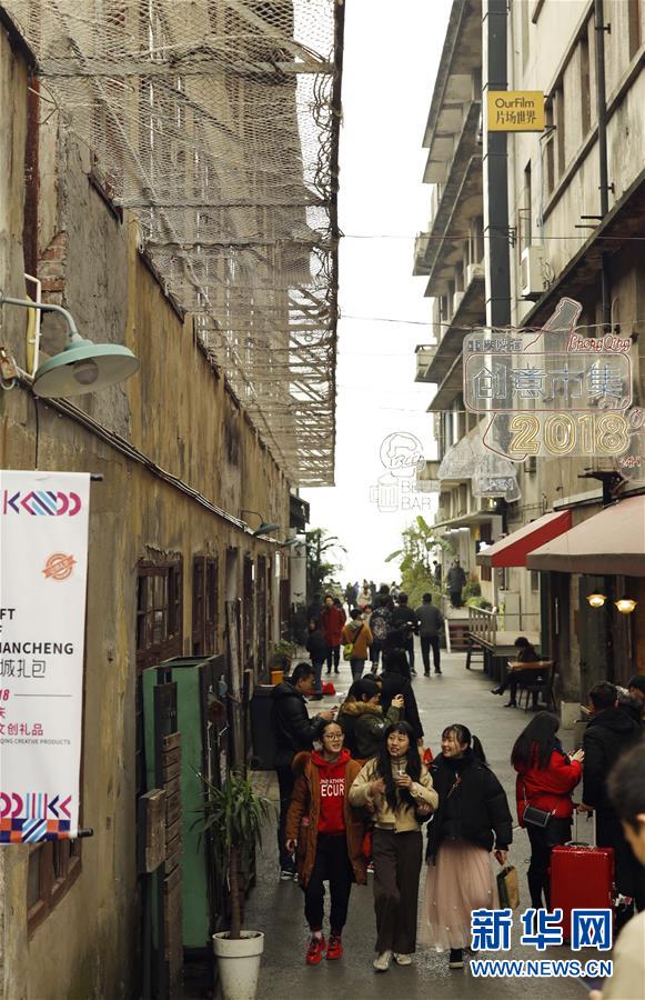1月1日,游客們在重慶鵝嶺二廠文藝街區(qū)內(nèi)游覽。