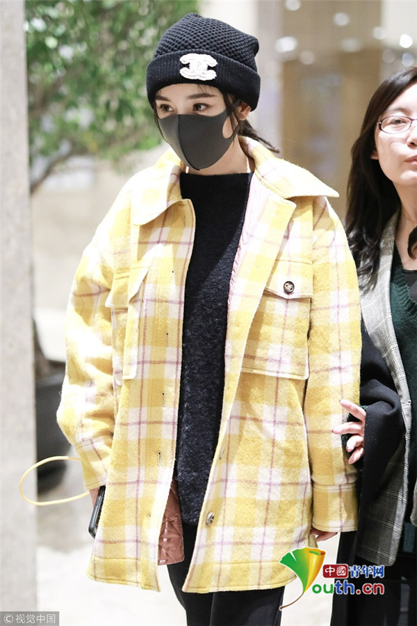 2018年1月6日,上海,楊冪現(xiàn)身某酒店。她戴著帽子口罩,身穿黑色套裝,而外面搭配的奶黃格子外套卻瞬間減齡,明亮又惹眼,無懼寒冬露著纖細(xì)腳踝,依舊是那個(gè)很會(huì)穿搭的大冪冪。