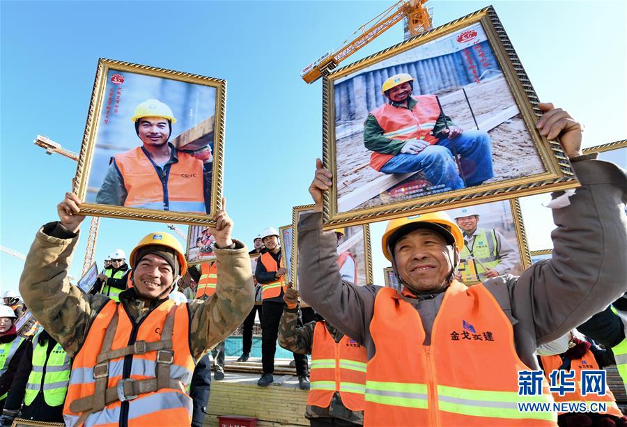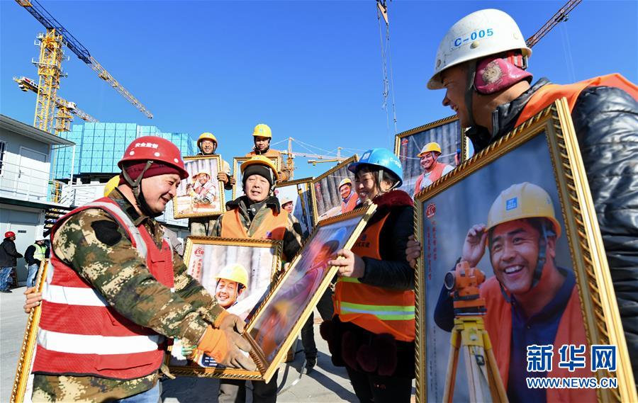 1月9日,中建一局北京城市副中心周轉(zhuǎn)房項目工地施工單位的職工在展示自己的照片。 當日,由北京市總工會主辦的工會“兩節(jié)”送溫暖活動之一的“把微笑帶回家,為最美勞動者點贊”大型公益活動,在中建一局北京城市副中心職工周轉(zhuǎn)房項目工地舉行。眾多勞動者獲贈“微笑”肖像照和保溫壺、毛巾等新春“大福包”。 新華社記者 李欣 攝