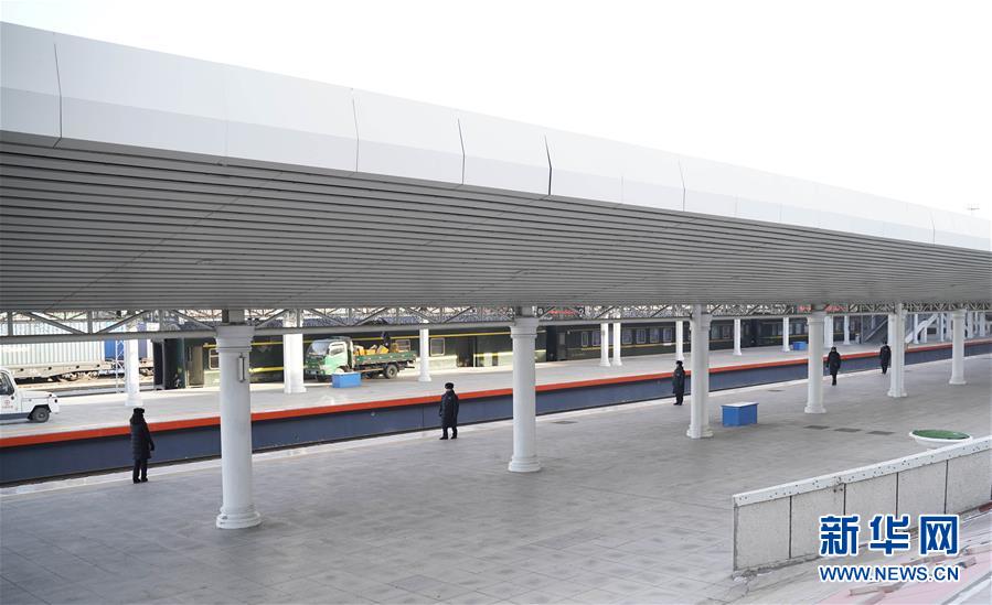 1月11日,在滿洲里火車站站臺,“金鑰匙”服務(wù)臺客運員在嚴寒中等待列車進站。