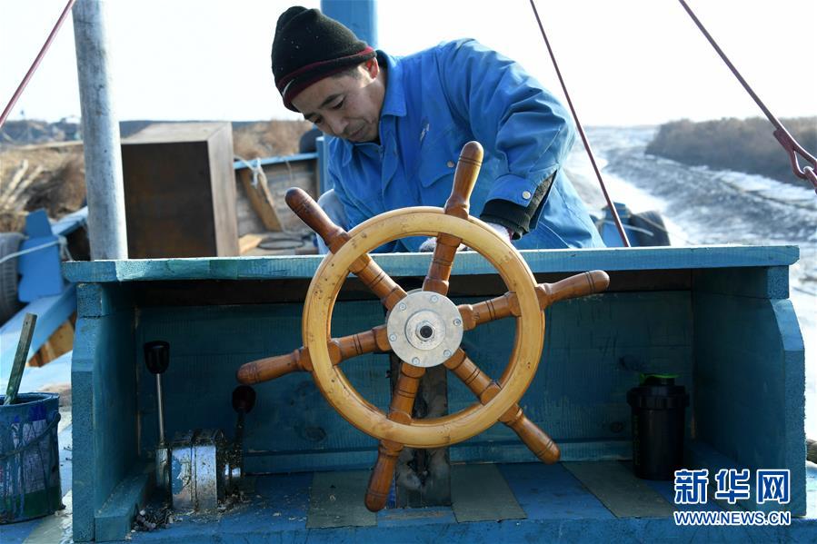 在青島紅雙木造船廠,一位造船師傅在刷漆(1月10日攝)。新華社記者 李紫恒 攝