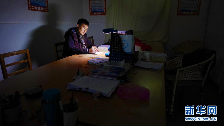 1月4日,學生們和老師都走后,章站亮在學校的辦公室內(nèi)備課。 新華社記者 胡晨歡 攝