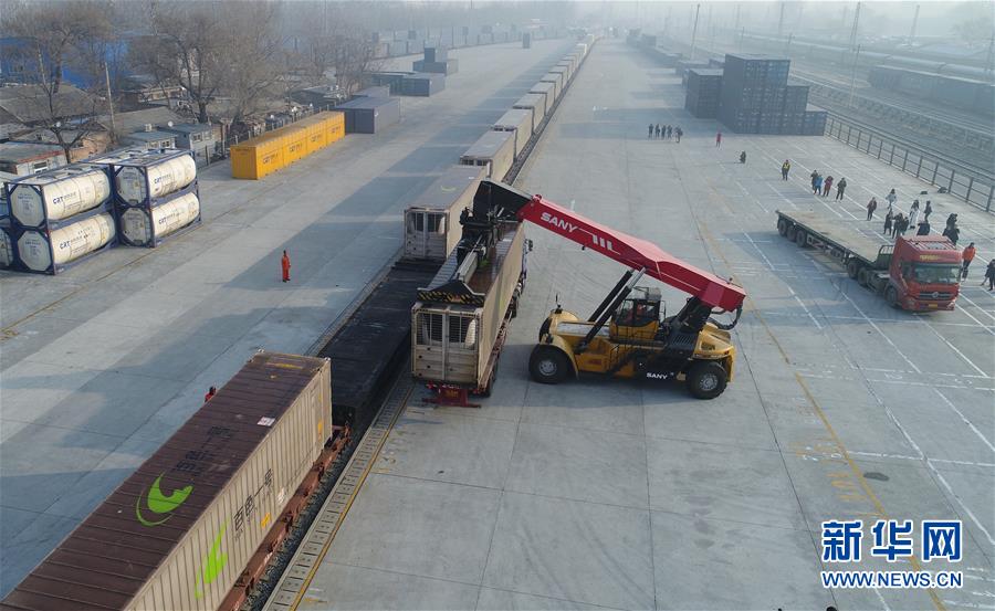 1月14日,工作人員在北京大紅門站卸貨。 當(dāng)日,從廣西發(fā)出的“年貨”集裝箱班列“百色一號(hào)”抵達(dá)北京鐵路局北京大紅門站,滿載南方新鮮果蔬、凍海產(chǎn)品的集裝箱將從這里配送到京津冀地區(qū),不僅豐富老百姓的節(jié)日餐桌,也為廣西地區(qū)的特色農(nóng)產(chǎn)品打開了北方銷售市場。 新華社記者 邢廣利 攝
