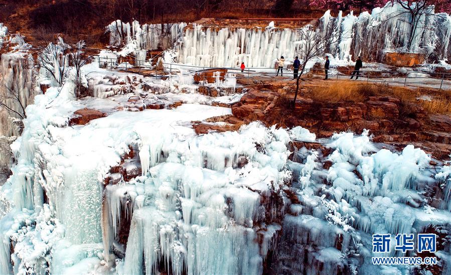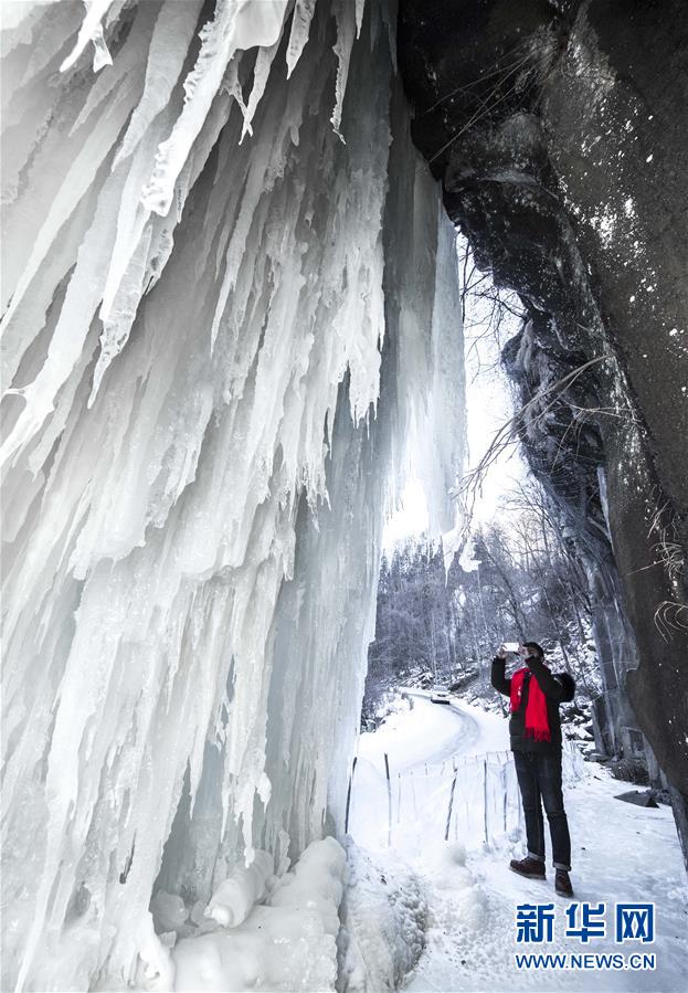 近日,河北省涉縣太行五指山景區(qū)出現(xiàn)冰瀑景觀,吸引眾多游客到此觀賞。