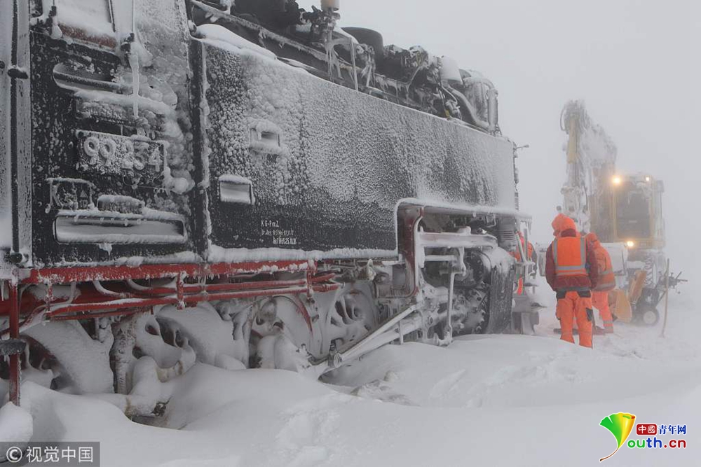 德國多地大雪紛飛 火車被困半路進(jìn)退不得