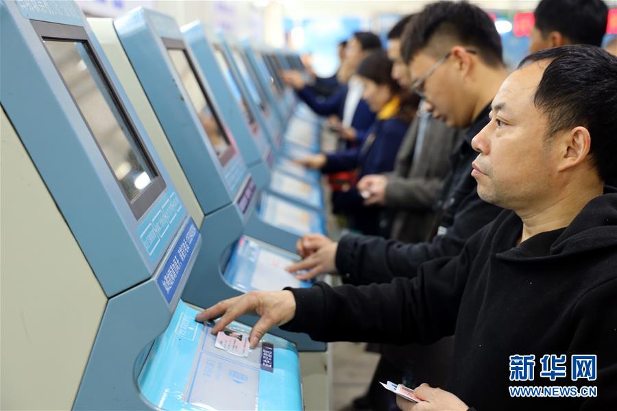 1月15日,旅客在廣州火車站售票大廳外臨時搭建的互聯(lián)網(wǎng)購票取票大棚內(nèi)的自助終端上取票。 為適應(yīng)互聯(lián)網(wǎng)購票旅客比重持續(xù)上升趨勢,廣州火車站在籌備2019年春運票務(wù)業(yè)務(wù)時,優(yōu)化互聯(lián)網(wǎng)購票取票和退改簽業(yè)務(wù)辦理流程設(shè)計,提升效率,方便旅客出行。 新華社記者劉大偉攝