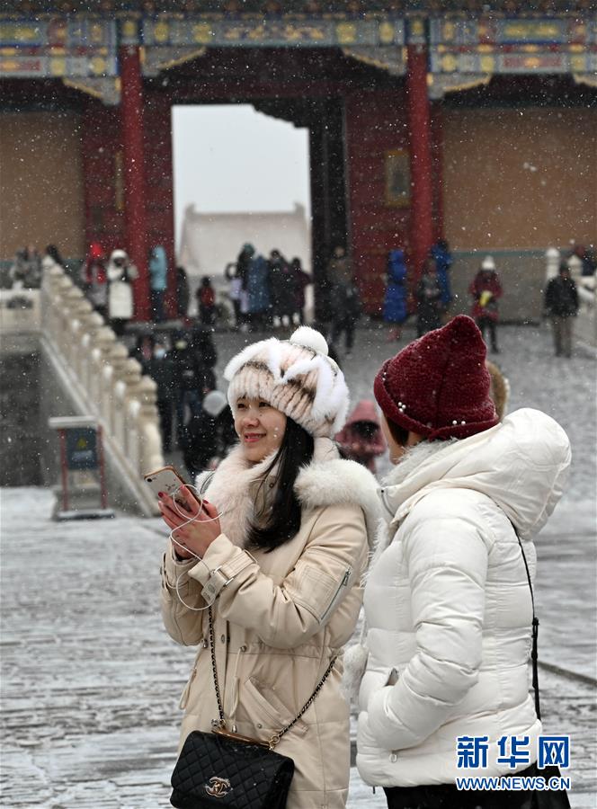 2月14日,游客在雪中游覽北京故宮。 當(dāng)日,北京降雪,大批游人來到故宮游覽賞雪。 新華社記者 金良快 攝