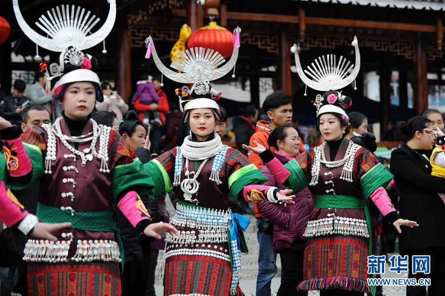 2月24日,在貴州省凱里市舟溪鎮(zhèn),苗族姑娘身著盛裝跳蘆笙舞。 當(dāng)日,在貴州省黔東南苗族侗族自治州凱里市舟溪鎮(zhèn),來自各地的苗族群眾身著節(jié)日盛裝,歡聚在古老的“甘囊香”蘆笙堂,男子吹奏起蘆笙,姑娘和孩子們跳起蘆笙舞,歡度新春,祈求風(fēng)調(diào)雨順、五谷豐登,青年男女也借此良日尋覓意中人。 “甘囊香”是苗語音譯,意思為“河流的下游,神仙匯聚的地方”?!案誓蚁恪碧J笙會(huì)是貴州規(guī)模最大、最古樸的苗族蘆笙會(huì)之一。 新華社記者楊文斌攝