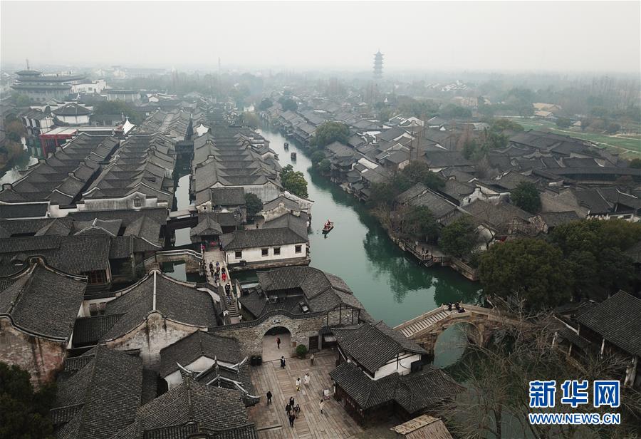 2月25日,游人在烏鎮(zhèn)游覽觀光(無人機拍攝)。 隨著氣溫升高,浙江省桐鄉(xiāng)市烏鎮(zhèn)景區(qū)春意萌動。 新華社記者翁忻旸攝