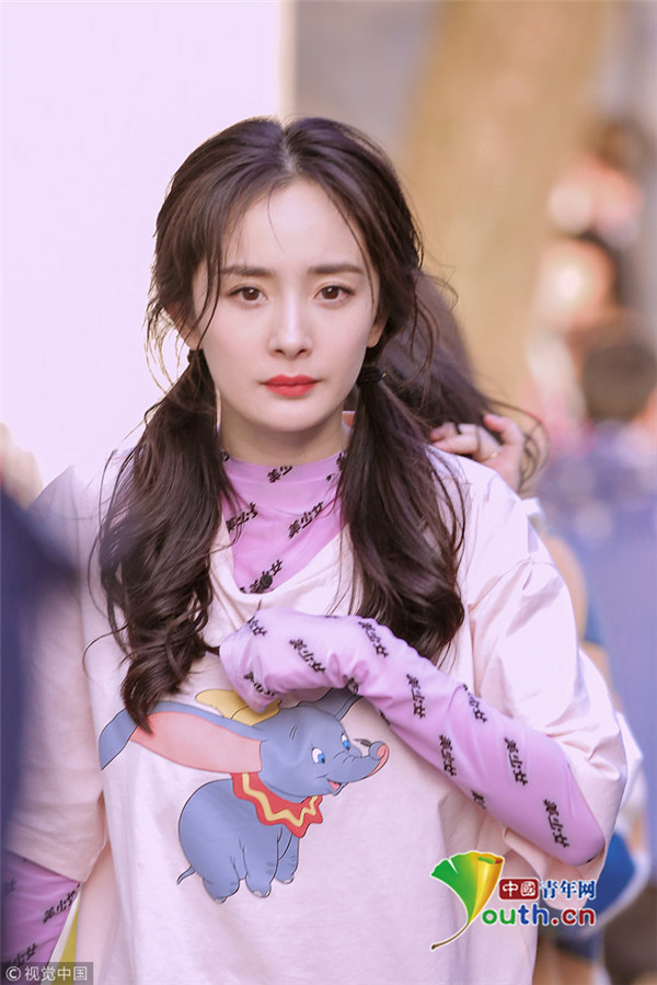 2019年3月12日,湖南長沙,楊冪錄制某綜藝節(jié)目路透曝光。她扎著雙馬尾甜美可愛似少女,穿oversized的牛仔外套和寬大T恤,戴著防曬的護(hù)袖,身材十分纖細(xì)苗條。錄制期間,楊冪氣質(zhì)明艷靈動(dòng)活潑,元?dú)鉂M滿青春感爆棚。