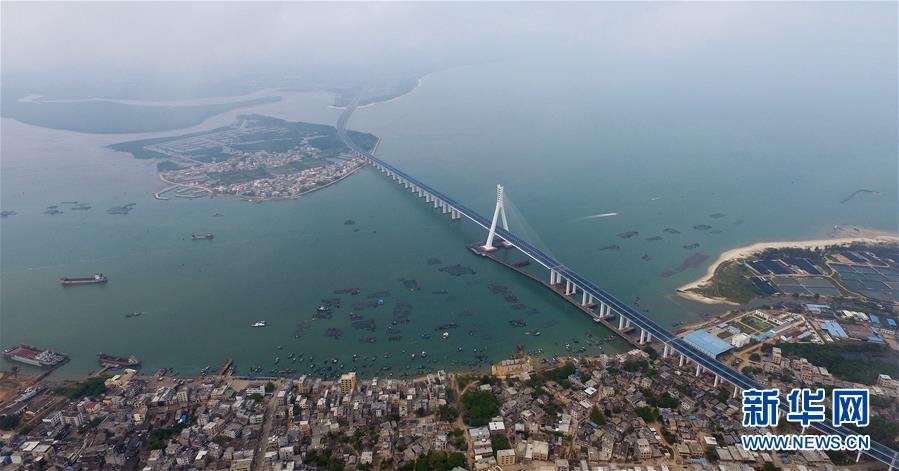 這是3月18日無(wú)人機(jī)拍攝的海南海文大橋。3月18日,中國(guó)首座跨越地震活動(dòng)斷層的跨海大橋——海南海文大橋建成通車。海文大橋(原名鋪前大橋)連接??谑醒葚S鎮(zhèn)和文昌市鋪前鎮(zhèn),全長(zhǎng)5.597公里,其中跨海大橋長(zhǎng)約3.959公里。大橋通車后,從??诘轿牟伹版?zhèn)的路程將由原來(lái)的1小時(shí)30分鐘縮短至約20分鐘。 新華社記者郭程攝