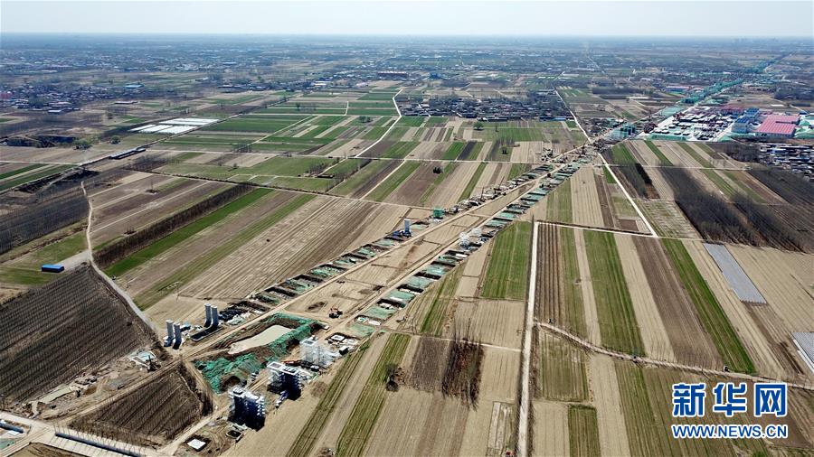 這是京雄城際鐵路施工現(xiàn)場(3月21日無人機拍攝)。新華社記者 牟宇 攝