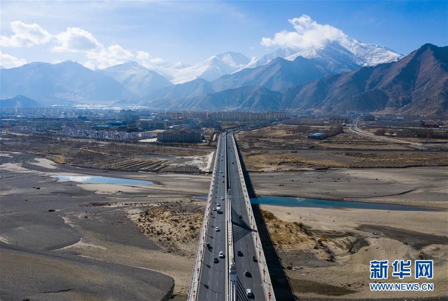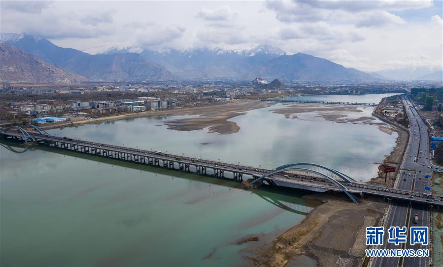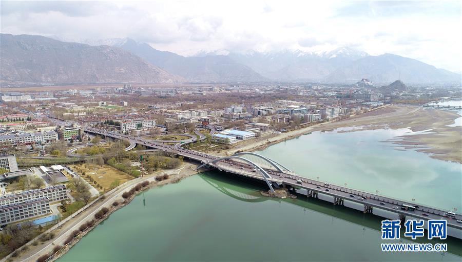 這是橫跨在拉薩河上的拉薩市區(qū)公路(4月3日無(wú)人機(jī)拍攝)。 新華社記者 晉美多吉 攝