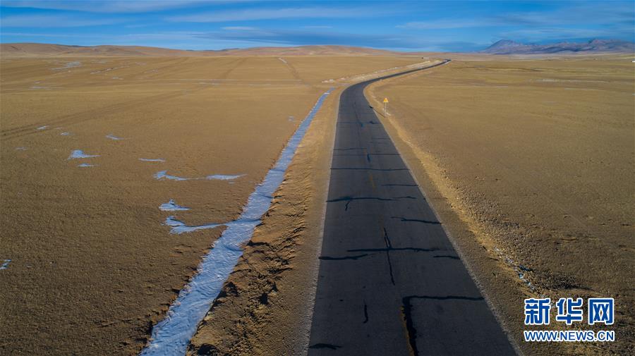 這是通往藏北雙湖縣的公路(1月30日無(wú)人機(jī)拍攝)。新華社記者 普布扎西 攝