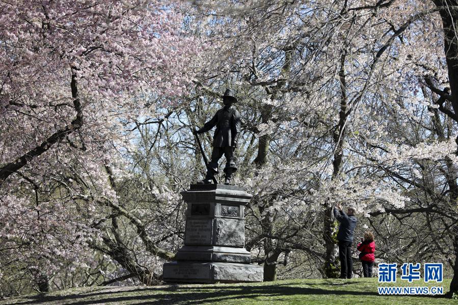 4月16日,人們在美國紐約中央公園游覽。 新華社記者 王迎 攝