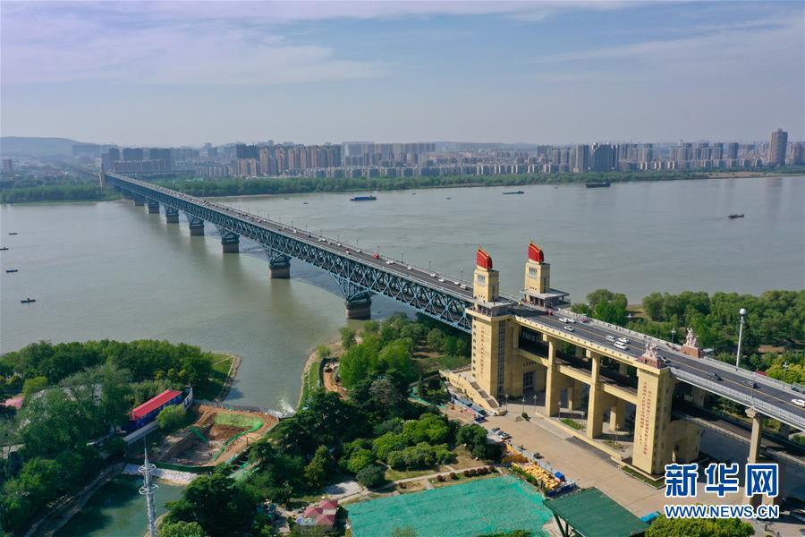 這是4月18日無(wú)人機(jī)拍攝的南京長(zhǎng)江大橋。 新華社記者 李博 攝