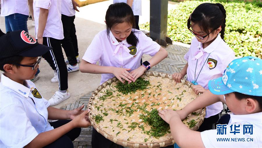 4月25日,小學(xué)生在定心茶園體驗春茶采摘。當日,來自重慶市巴南區(qū)的300余名小學(xué)生來到位于巴南白象山的定心茶園,體驗茶葉采摘、制作,學(xué)習(xí)茶文化禮儀。近年來,重慶市巴南區(qū)積極發(fā)展茶產(chǎn)業(yè),推動“茶旅融合”“茶教融合”發(fā)展,取得了良好的經(jīng)濟和社會效益。 新華社記者 王全超 攝