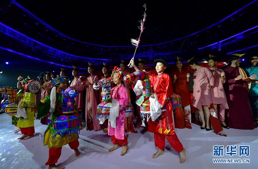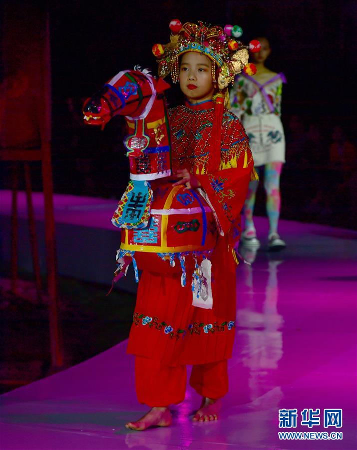 4月27日,小模特身穿民族服飾展示土樓當(dāng)?shù)氐姆俏镔|(zhì)文化遺產(chǎn)竹馬戲。 當(dāng)日,土樓光語國際時(shí)尚大秀在福建省南靖縣的土樓裕昌樓內(nèi)舉行。這場(chǎng)融匯文化、時(shí)尚與旅游元素的大秀,通過傳統(tǒng)與時(shí)尚的有機(jī)融合,展現(xiàn)南靖土樓及文化的魅力和風(fēng)采。 新華社記者魏培全攝
