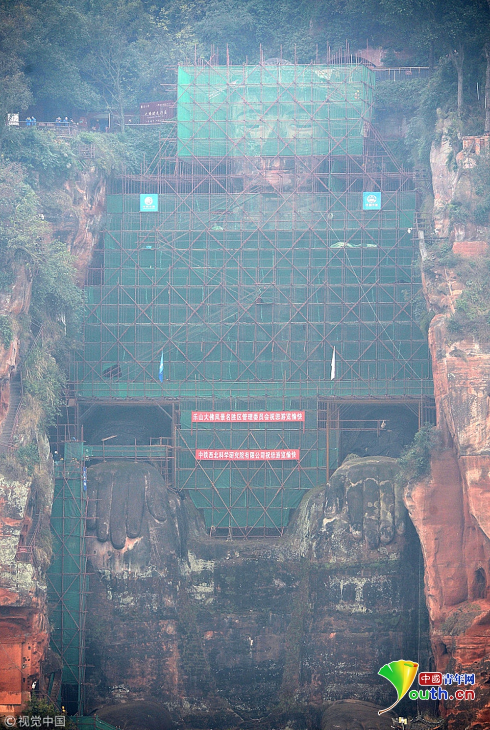 樂(lè)山大佛本體已全遮蔽 胸腹開(kāi)裂病害原因基本查明