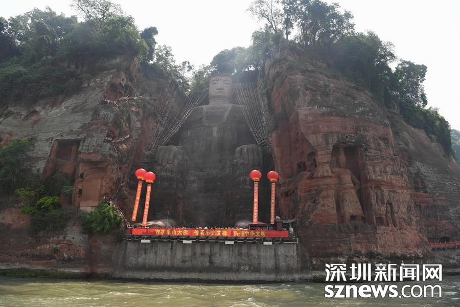 2019年4月26日,四川樂山,樂山大佛經(jīng)過閉關(guān)“體檢”、美容保養(yǎng)及智能監(jiān)測等環(huán)節(jié)后,胸腹部開裂險情排除,生物病害得到有效控制,大佛正式出關(guān)。