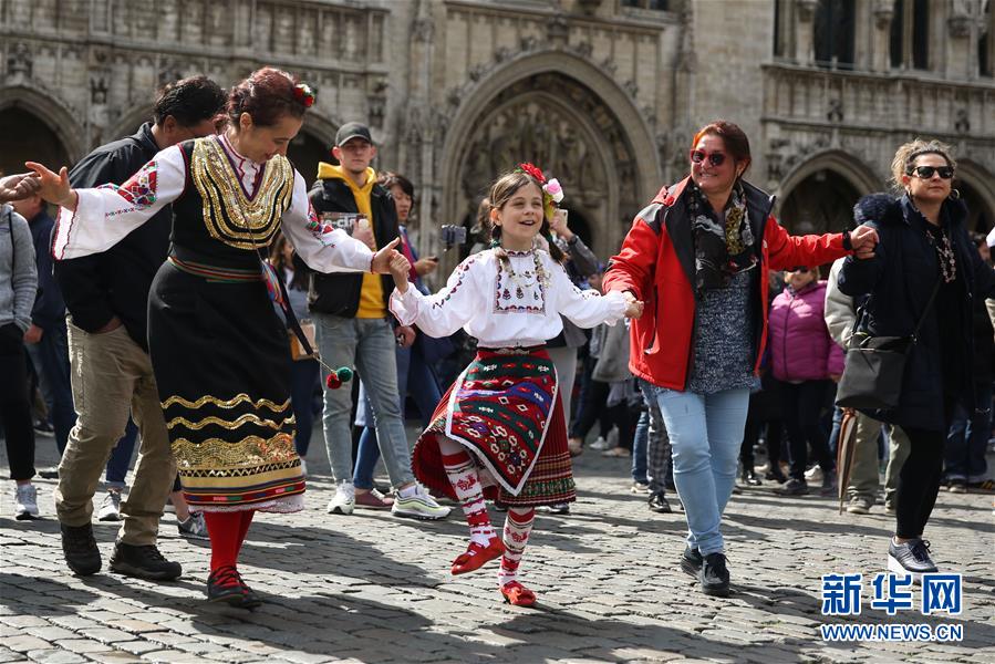 4月28日,在比利時布魯塞爾大廣場,表演者與游客一同跳舞。 當(dāng)日,來自歐洲多個國家的表演者在比利時布魯塞爾大廣場載歌載舞,慶祝為期五天的2019年巴爾干文化藝術(shù)節(jié)圓滿落幕。該文化藝術(shù)節(jié)旨在用音樂、舞蹈、文學(xué)、街頭藝術(shù)等方式向公眾展現(xiàn)東南歐巴爾干半島地區(qū)的民族文化風(fēng)情。 新華社記者鄭煥松攝