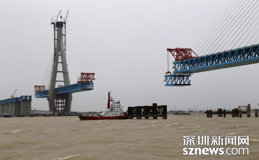 滬通長(zhǎng)江大橋主航道橋首個(gè)鋼梁段即將合龍
