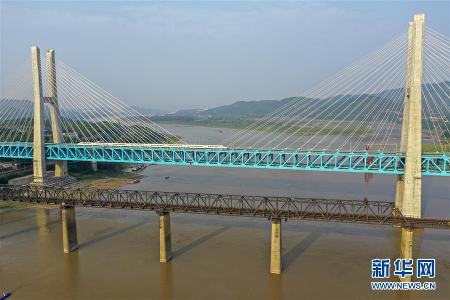 一列高鐵列車從新白沙沱長(zhǎng)江特大橋上駛過(guò)(4月23日無(wú)人機(jī)拍攝)。 4月23日下午5點(diǎn)40分,隨著重慶白沙沱長(zhǎng)江大橋通行的最后一列客運(yùn)列車順利通過(guò),這座“服役”了59年的重慶首座長(zhǎng)江大橋進(jìn)入“退役”倒計(jì)時(shí)。4月24日后,所有列車將改線經(jīng)距白沙沱長(zhǎng)江大橋約100米的新白沙沱長(zhǎng)江特大橋通行,新橋“接力”老橋,運(yùn)輸能力將得到大幅提升。 白沙沱長(zhǎng)江大橋于1958年開工,1960年通過(guò)首趟列車,是繼武漢長(zhǎng)江大橋之后的第二座長(zhǎng)江大橋。 新華社記者 劉潺 攝