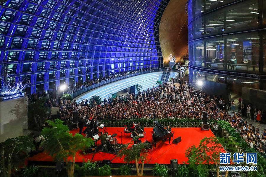 5月19日凌晨,觀眾在國(guó)家大劇院公共空間欣賞小野麗莎“午夜玫瑰”爵士樂專場(chǎng)音樂會(huì)。 5月18日晚,作為亞洲文化展演活動(dòng)的演出之一,著名爵士歌手小野麗莎攜樂團(tuán)首次登臺(tái)國(guó)家大劇院,亮相“午夜玫瑰”爵士樂專場(chǎng)音樂會(huì)。 新華社記者 張玉薇 攝