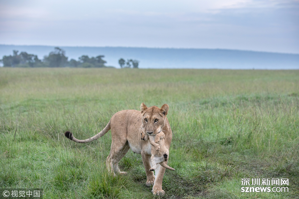 英國野生動物攝影師Paul Goldstein在肯尼亞的馬賽馬拉拍到了一頭小獅子被媽媽教訓(xùn)的場面。