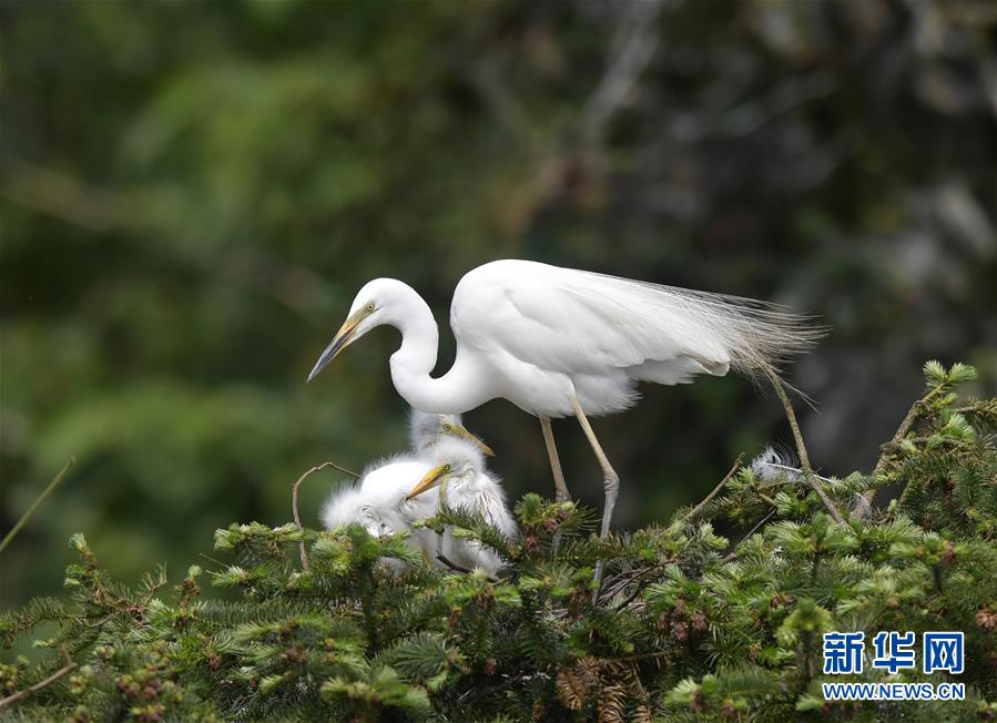 在江西省南昌市新建區(qū)象山森林公園內(nèi),白鷺和自己的雛鳥在一起(5月21日攝)。 近日,在江西省南昌市新建區(qū)象山森林公園內(nèi),已安家筑巢的大批鷺鳥陸續(xù)孵化出了后代。象山森林公園有著“鷺鳥王國”的美譽(yù),生態(tài)環(huán)境良好,每年都會吸引白鷺、蒼鷺、夜鷺等種類的鷺鳥飛抵棲息和繁衍后代。 新華社記者 彭昭之 攝