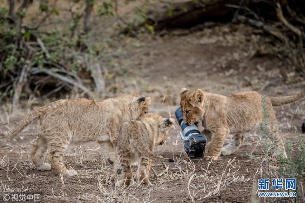 近日,非洲博茨瓦納馬沙圖野生動物保護區(qū)內一頭獅子叼起攝影師掉落在地上的相機,之后還將相機交給小獅子們玩耍,看起來十分好奇,而攝影師非常無奈?,F年57歲的叢林探險家Barbara Jensen Vorster在一輛越野車上為馬沙圖野生動物保護區(qū)的獅群拍照時,相機不小心掉到了地上。砰的一聲響驚動了母獅子,它向攝影師方向移動,迫使探險隊撤退。(圖片來源:視覺中國)
