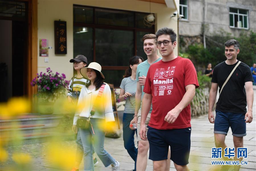 中外游客在石舍村游覽(5月25日攝)。 石舍村是浙江省桐廬縣富春江鄉(xiāng)村慢生活體驗(yàn)區(qū)中的三個(gè)村落之一,位置偏僻,依溪而居,風(fēng)景秀美。近年來,石舍村結(jié)合古建筑保護(hù)工作,在清潔、美化村莊的基礎(chǔ)上,對(duì)一些廢棄古建筑進(jìn)行修繕,引入咖啡館、民宿等文化創(chuàng)意類項(xiàng)目,優(yōu)良的生態(tài)環(huán)境和濃郁的文化氛圍吸引大批游客前來體驗(yàn),小山村走上了一條發(fā)展美麗經(jīng)濟(jì)之路。2018年,石舍村接待游客10萬(wàn)8千余人次,旅游經(jīng)營(yíng)凈收入1260余萬(wàn)元。 新華社記者 黃宗治 攝