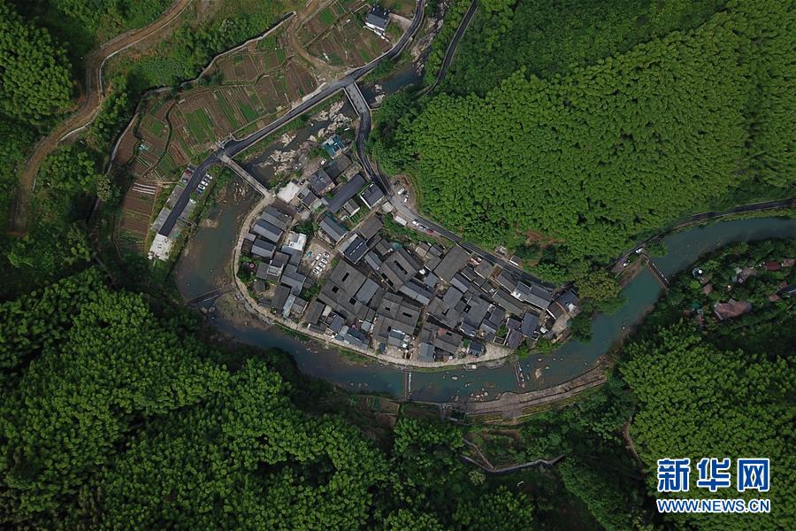 5月26日無人機(jī)拍攝的富春江鎮(zhèn)石舍村的古建筑群。 石舍村是浙江省桐廬縣富春江鄉(xiāng)村慢生活體驗(yàn)區(qū)中的三個(gè)村落之一,位置偏僻,依溪而居,風(fēng)景秀美。近年來,石舍村結(jié)合古建筑保護(hù)工作,在清潔、美化村莊的基礎(chǔ)上,對(duì)一些廢棄古建筑進(jìn)行修繕,引入咖啡館、民宿等文化創(chuàng)意類項(xiàng)目,優(yōu)良的生態(tài)環(huán)境和濃郁的文化氛圍吸引大批游客前來體驗(yàn),小山村走上了一條發(fā)展美麗經(jīng)濟(jì)之路。2018年,石舍村接待游客10萬(wàn)8千余人次,旅游經(jīng)營(yíng)凈收入1260余萬(wàn)元。 新華社記者 黃宗治 攝