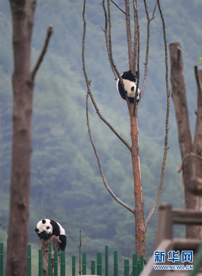 5月25日在中國(guó)大熊貓保護(hù)研究中心臥龍神樹(shù)坪基地的“熊貓幼兒園”內(nèi)拍攝的大熊貓。